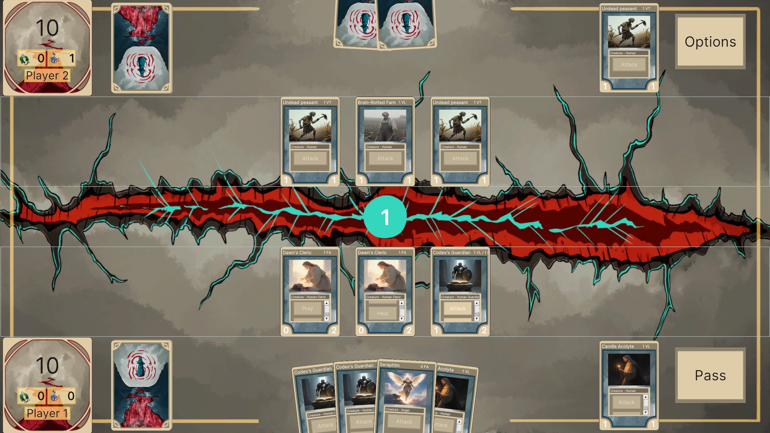 A card game where your faction of choice fights for the control of a new energy source that emanates from the earth.